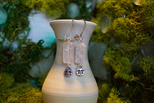 kitty rose quartz dangles